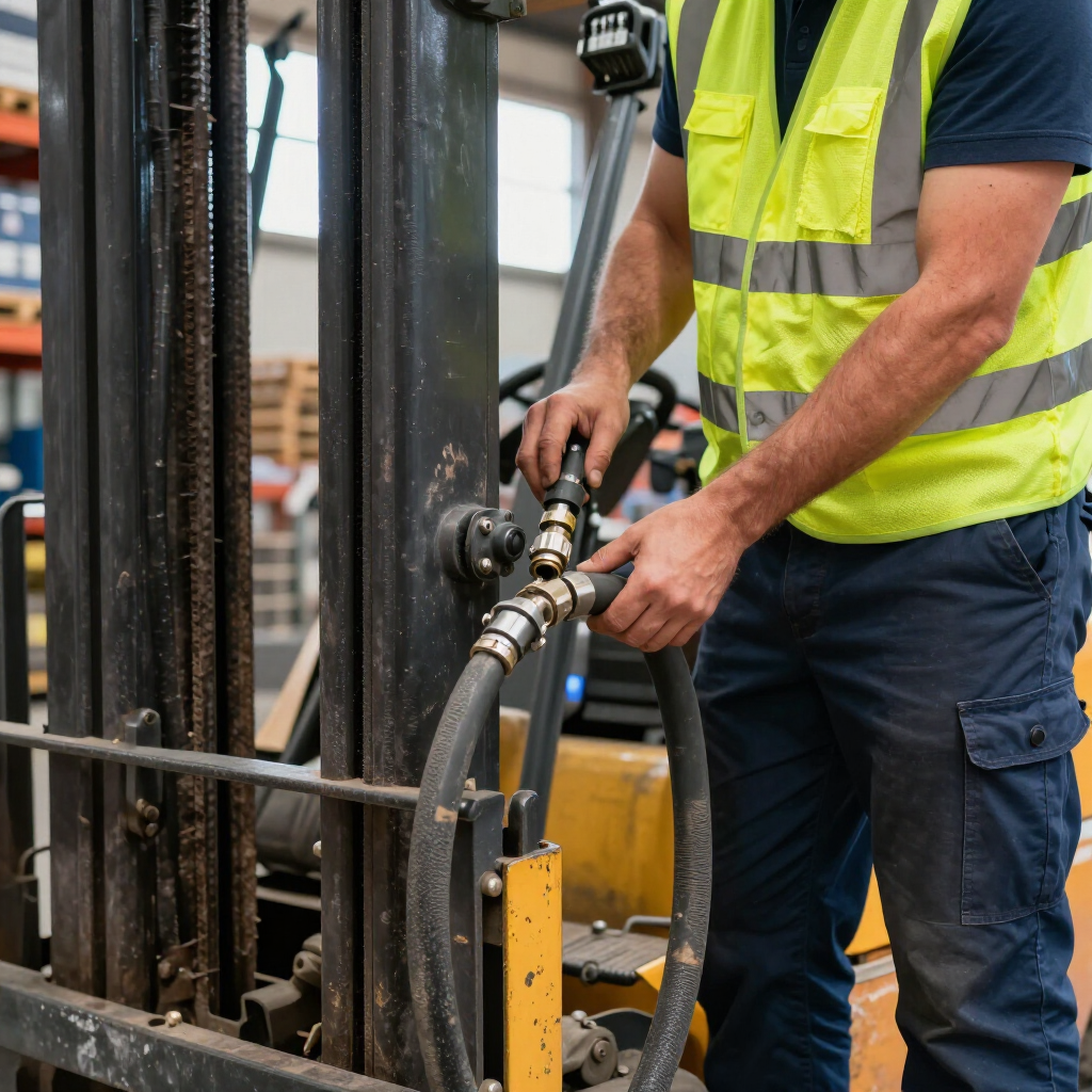 Las fugas son una de las señales más visibles y más ignoradas. Una mancha pequeña puede parecer “normal”, pero con el tiempo se transforma en baja de niveles, sobrecalentamiento y fallas en bombas, mangueras o sellos. En el sistema hidráulico, una fuga puede hacer que el mástil pierda capacidad de elevación o que el movimiento sea irregular, con riesgo de caída de carga.